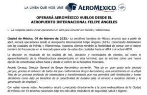 De acuerdo con el documento, Conesa declaró que la decisión de operar desde el AIFA viene a coronar un proceso de reestructuración al interior de la aerolínea. Estos movimientos –considera- permitirán que la empresa salga fortalecida y tomar decisiones que beneficien a sus clientes, la generación de empleos y la conectividad en el país.