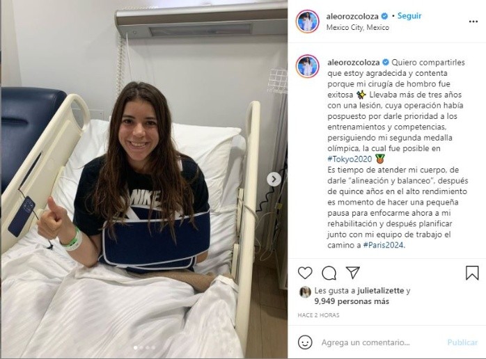 La medallista olímpica, Alejandra Orozco, informó que fue un éxito la cirugía de hombro derecho a la que se sometió.