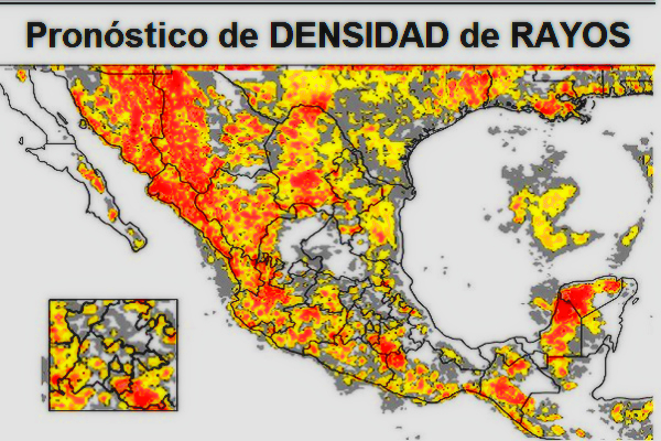 Además, lluvias muy fuertes se prevén en la Ciudad de México, Estado de México, Guerrero, Jalisco, Michoacán, Nayarit, Sinaloa, Sonora y Veracruz.
