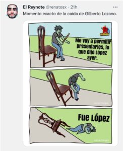 El empresario regiomontano se levantó para buscar entre sus archivos unas declaraciones del Ejecutivo federal. Sin embargo, tras regresar a su silla esta terminó por vencerse y provocó su caía. Posteriormente, el video se hizo viral, desatando la burla de miles de usuarios en las redes sociales, quienes recordaron que no es la primera vez que Lozano sufre un incidente de este tipo.
