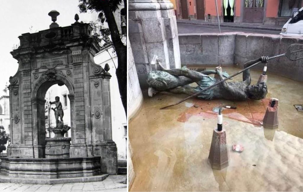 La Consejería Jurídica municipal será el área responsable de interponer la denuncia. La escultura original de Neptuno fue realizada por el arquitecto Francisco Eduardo Tresguerras en 1797 y se encuentra en el patio central de la delegación Centro Histórico, tras haber sido sustituida en 1988.