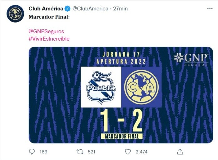 No hay mejor equipo hoy por hoy en el Apertura 2022 y que sea el serio candidato a llevarse el título del futbol mexicano que las Águilas del América, y es que en el arranque de la Jornada 17, derrotaron 2-1 a la Franja del Puebla en el Estadio Cuauhtémoc, lo que les asegura finalizar la campaña como líderes de la clasificación general con 38 unidades.