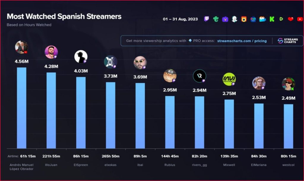 📈 Most Watched Spanish-Speaking Streamers across all platforms in August!