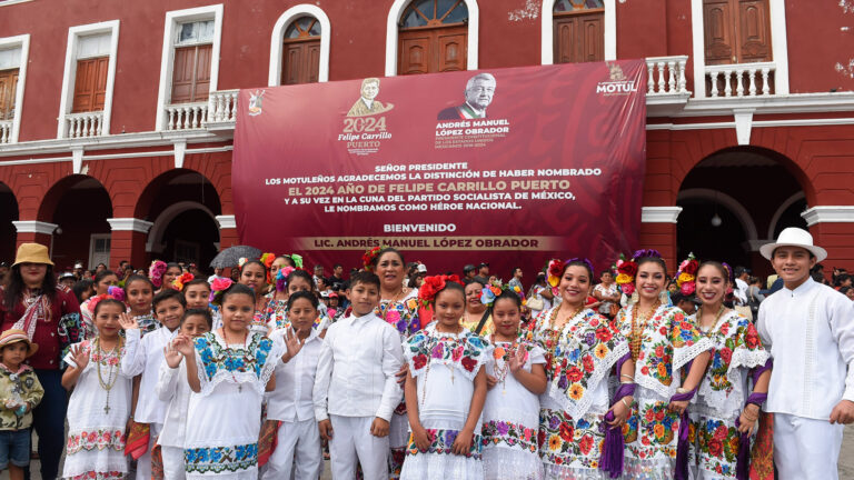Señor presidente, los motuleños agradecemos la distinción de haber nombrado el 2024 año de Felipe Carrillo Puerto y a su vez, en la cuna del Partido Socialista de México, le nombramos como héroe nacional.