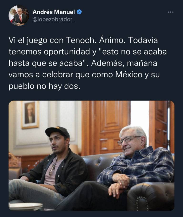“Vi el juego con Tenoch. Ánimo. Todavía tenemos oportunidad y esto no se acaba hasta que se acaba», apuntó el mandatario.