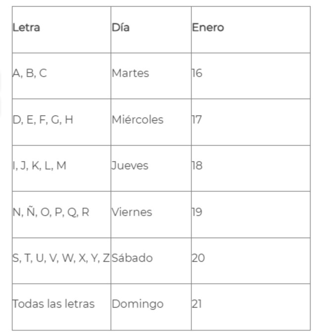 Ariadna Montiel precisó que, para conocer fecha y ubicación de los Módulos de Bienestar, está disponible la página oficial de la Secretaría de Bienestar gob.mx/bienestar; para brindar mejor atención, el registro se realiza de acuerdo con la letra inicial del primer apellido de la persona adulta mayor, bajo el siguiente calendario: