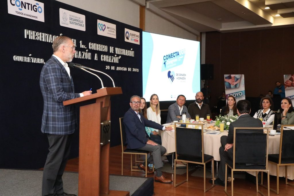Querétaro, Qro., 29 de agosto de 2023.- Con el objetivo de crear sinergia entre la iniciativa privada y las organizaciones de la sociedad civil para trabajar de manera conjunta por el desarrollo y progreso de los grupos vulnerables, la presidenta del Patronato del Sistema Estatal DIF, Car Herrera de Kuri, encabezó la presentación del Primer Congreso “Conectados”, bajo la iniciativa de Corazón a Corazón. Dicho evento se llevará a cabo el 23 y 24 de noviembre en el Querétaro Centro de Congresos (QCC).