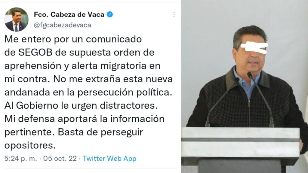 Regeneración, 5 de octubre del 2022. Luego de que se informó que se giró una orden de aprehensión en contra del exgobernador de Tamaulipas, Francisco García Cabeza de Vaca; el panista, respondió a través de sus redes sociales.