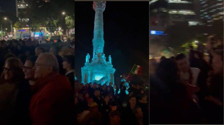 RegeneraciónMX, 27 de noviembre de 2022 . La marcha para conmemorar el cuarto aniversario de la cuarta transformación está más que lista y desde una noche antes, mexicanos se han hecho presente en el Ángel de la Independencia.