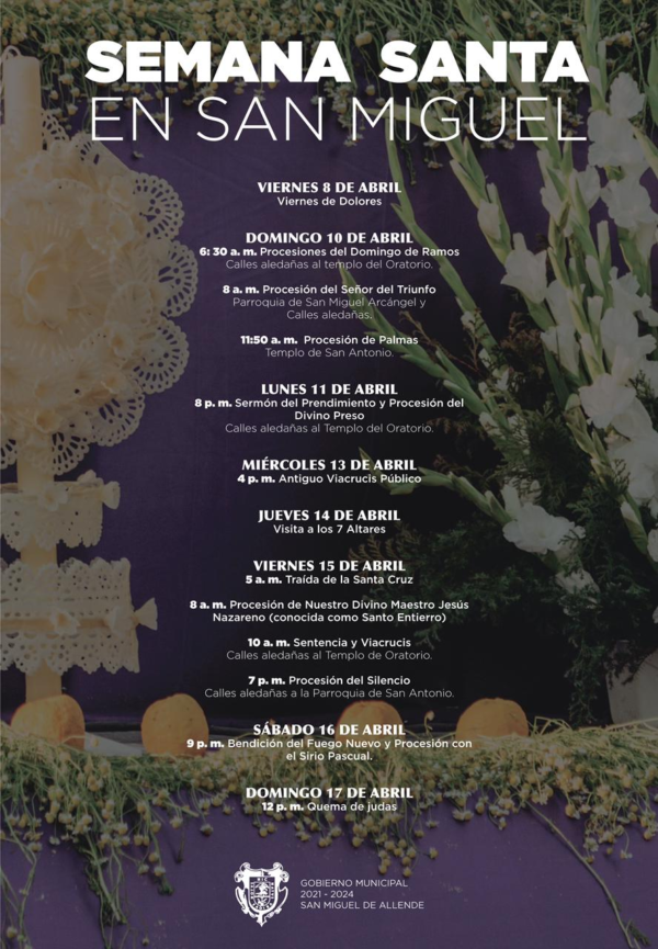 Como un reflejo de la personalidad tradicionalista de San Miguel de Allende, el Gobierno Municipal que encabeza Mauricio Trejo promueve la participación de las familias sanmiguelenses durante la Semana Santa 2022. A través de un comunicado de prensa dieron a conocer las actividades programadas.