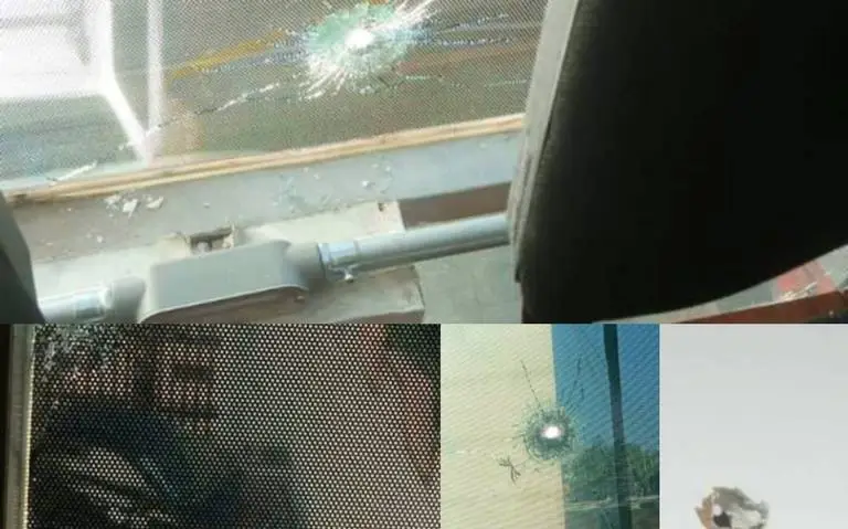 Según indicó el periodista, en la puerta se podía apreciar al menos cinco impactos por arma de fuego en las instalaciones; las cuales se encuentran en la plaza de la colonia Miraval de Cuernavaca.
