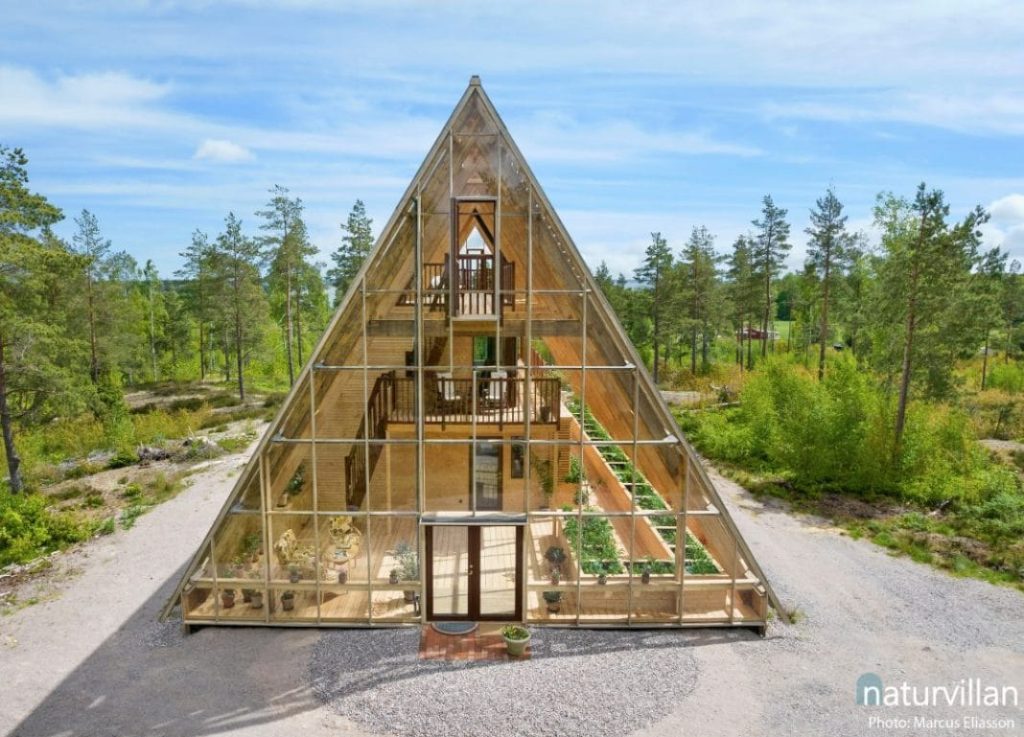«Atri» es una casa sin conexión a la red que es completamente autosuficiente en energía, agua y servicios vegetales. El diseño recuerda a un invernadero situado a orillas del lago Vänern, en Suecia.