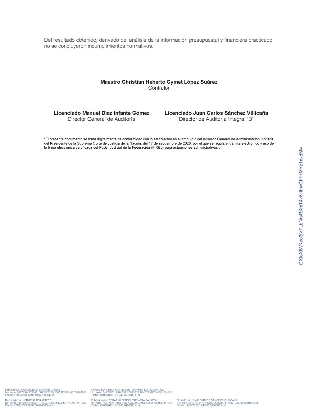 Por ello, la Contraloría interna de la Corte señaló que “estará atenta de que, en los trimestres subsecuentes, las unidades responsables ejerzan con oportunidad los recursos destinados al desarrollo de los requerimientos previstos en los Programas Anuales de Necesidades, a efecto de brindar, por medio de los reportes trimestrales presupuestales y financieros, información veraz y confiable que permita la adecuada toma de decisiones que contribuya al cumplimiento de los aspectos previstos en el apartado ‘a. Ahorro presupuestal’, de la línea ‘2.3 Reingeniería y medidas de mejora de la actividad administrativa de la SCJN y el CJF’, del documento ‘Líneas Generales de Trabajo para el Desarrollo Institucional 2023-2026’ de la ministra presidenta Norma Lucía Piña Hernández”.