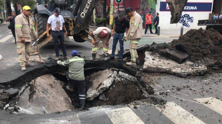 Vecinos de la alcaldía Cuauhtémoc en la Ciudad de México reportaron la aparición de un bache, que en cuestión de días se convirtió en un socavón.