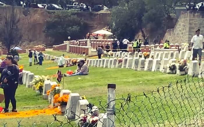 RegeneraciónMx, 2 de noviembre de 2023. Este día se informó que se llevó a cabo el festejo del Día de Muertos, se reportó una balacera en el cementerio en San Juan Totoltepec, Naucalpan, Estado de México.