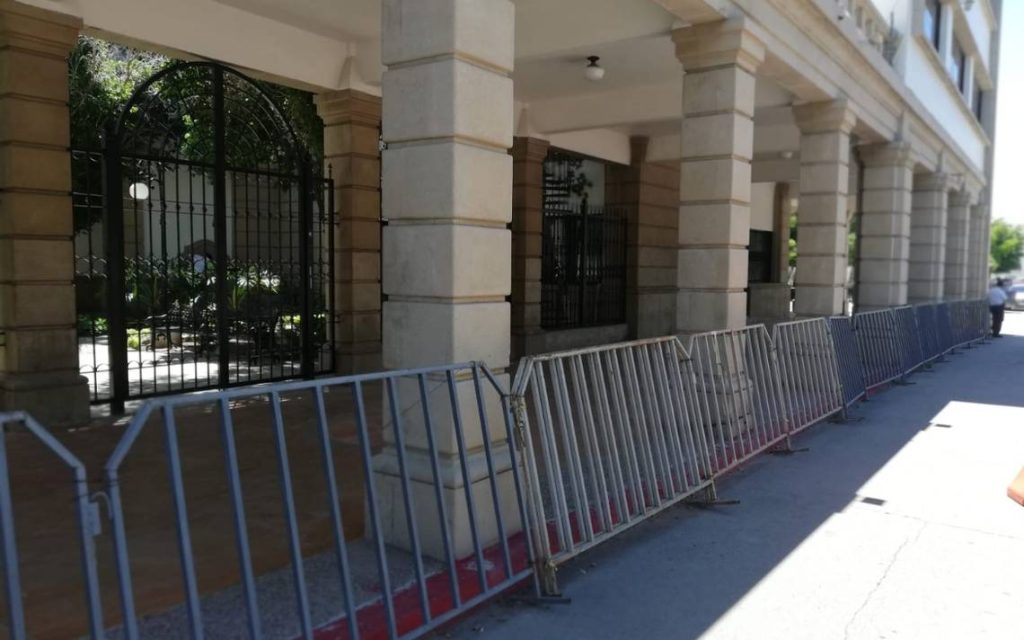 Las banquetas de los accesos principales del edificio de Palacio Municipal, se mantienen cerradas por la rehabilitación que se hizo de la tubería y se espera que para antes de la realización de las Fiestas Patrias en septiembre sean abiertas.