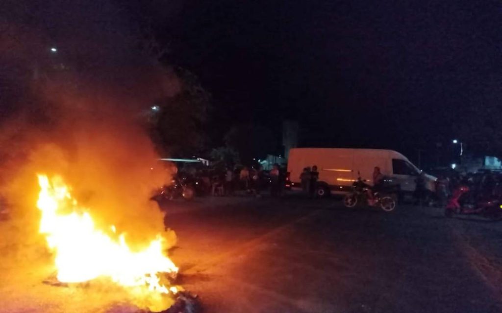 Los manifestantes mantienen vehículos atravesados en la vialidad, y quemaron neumáticos para exigir la presencia de las dos personas.