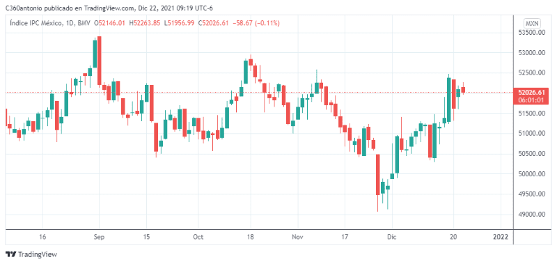 La Bolsa Mexicana de Valores (BMV) opera con una ligera pérdida este miércoles. La plaza accionaria retrocede en una jornada que comienza con bajo volumen de negocios debido al periodo vacacional de fin de año. Sin embargo, los mercados siguen atentos al avance de la contagiosa variante Ómicron de Covid-19.