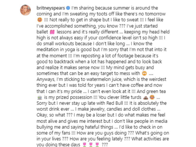 Spears concluyó su mensaje preguntando a sus fans cómo están.