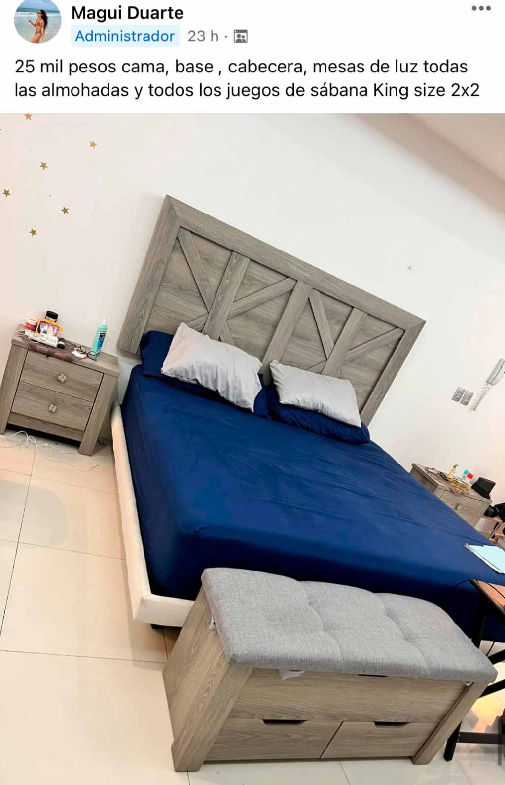 Un espejo de gran tamaño para verte de cuerpo entero a un precio de cuatro mil pesos, así como un dispensador de agua con niveles de temperatura a un costo de cuatro mil 500 pesos, así como un juego de recámara tamaño king size con un valor de 25 mil pesos.