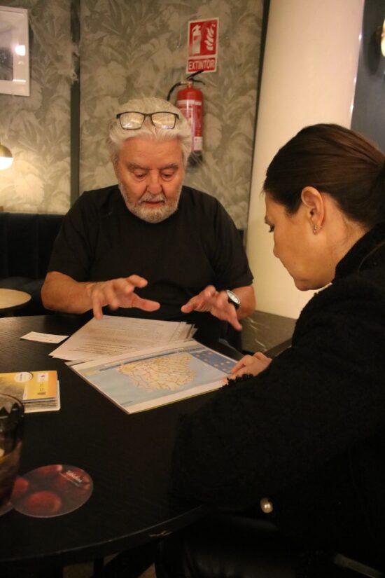 Querétaro, Qro., 1 de noviembre de 2022.- La secretaria de Turismo estatal, Adriana Vega Vázquez Mellado, continúa su gira de trabajo en Madrid, España, donde se reunió con el presidente de la Federación Española de Asociaciones Amigas del Camino de Santiago, Jorge Martínez Cava, para intercambiar experiencias exitosas y avanzar en el desarrollo de rutas de turismo religioso.