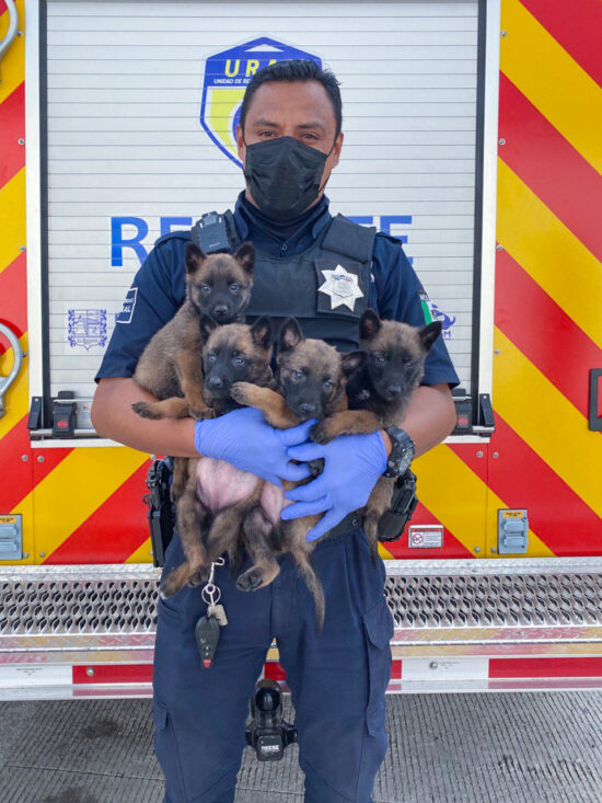 Al recibir el reporte, rescatistas del CAAM, en conjunto con elementos de la Secretaría de Seguridad Pública y Tránsito Municipal (SSPyTM), se trasladaron a dicho sitio encontrando al probable infractor, quien ofrecía a cuatro cachorros tipo pastor belga, de aproximadamente un mes de nacidos, por lo que se puso a disposición de las autoridades competentes a dicho sujeto, quien violaba flagrantemente el Reglamento para la Protección y Control de la Fauna del municipio.