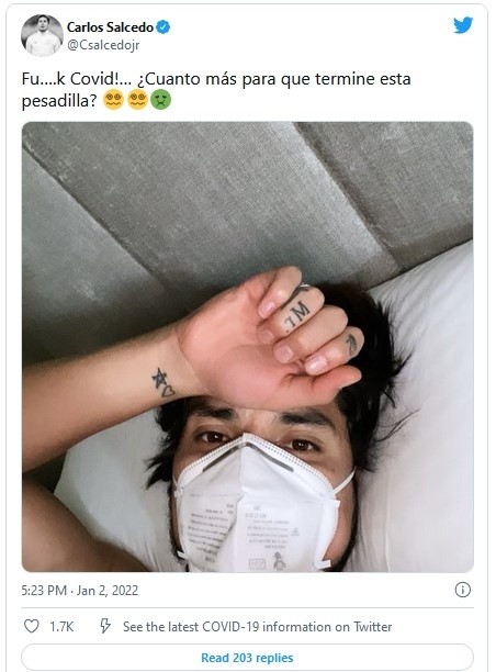 Carlos Salcedo informó en sus redes sociales que dio positivo a COVID-19.