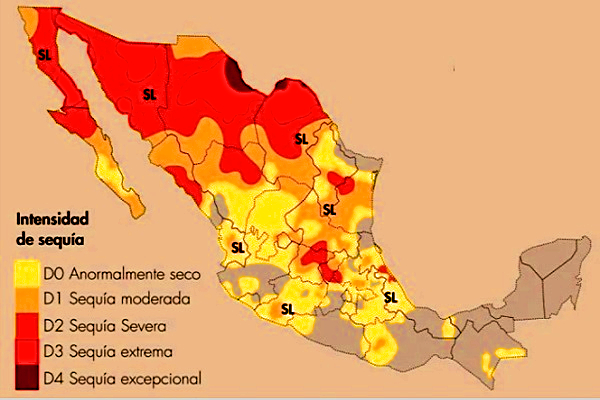 En Coahuila y Chihuahua 10 municipios con sequía excepcional. Sequía en la totalidad de Aguascalientes, Baja California y Querétaro