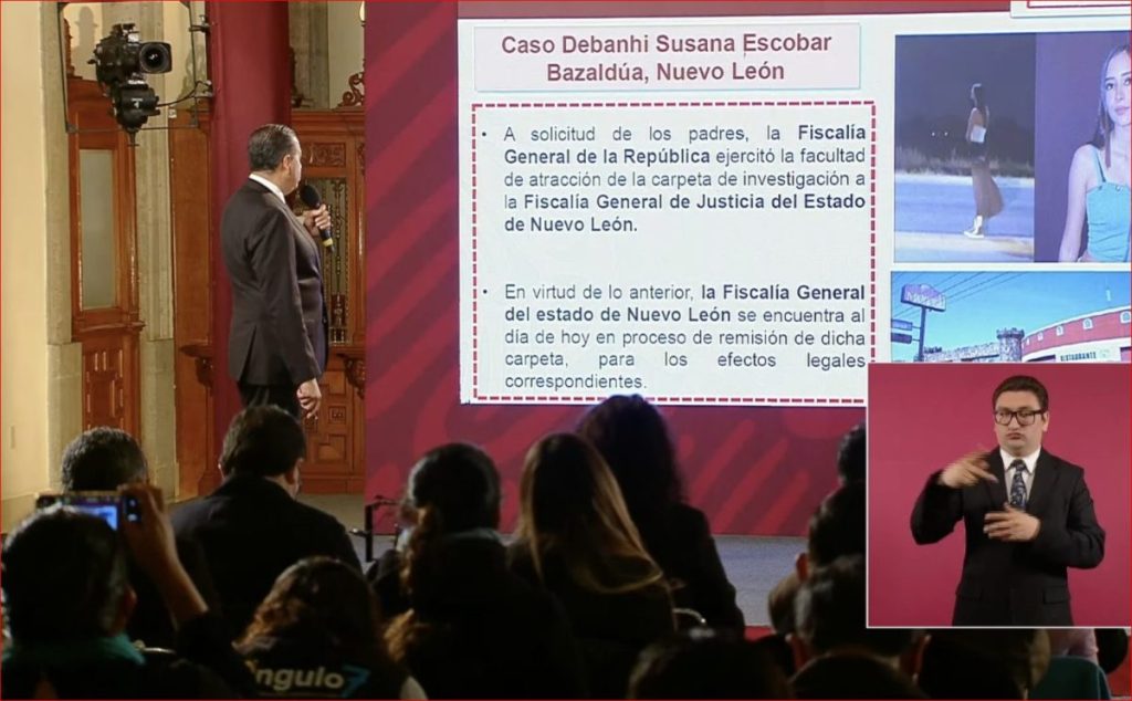 (29 DE SEPTIEMBRE, 2022).- La mañana de este jueves, el subsecretario de Seguridad, Ricardo Mejía, dio a conocer que la Fiscalía General de la República (FGR) ya atrajo el caso del feminicidio de Debanhi Escobar.