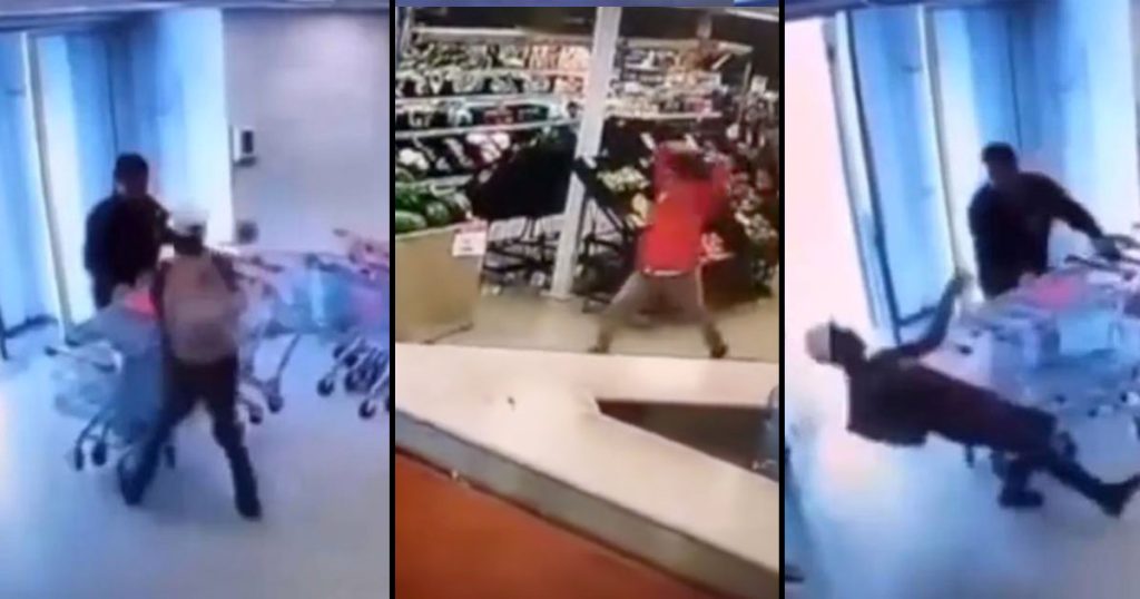 Pista de arrojamiento de botellas.- Un ladrón estaba en un supermercado saqueando hasta que recibió un “cocacolazo” de parte de uno de los empleados en lo que debe ser el video más satisfactorio desde la caída de Piqué.