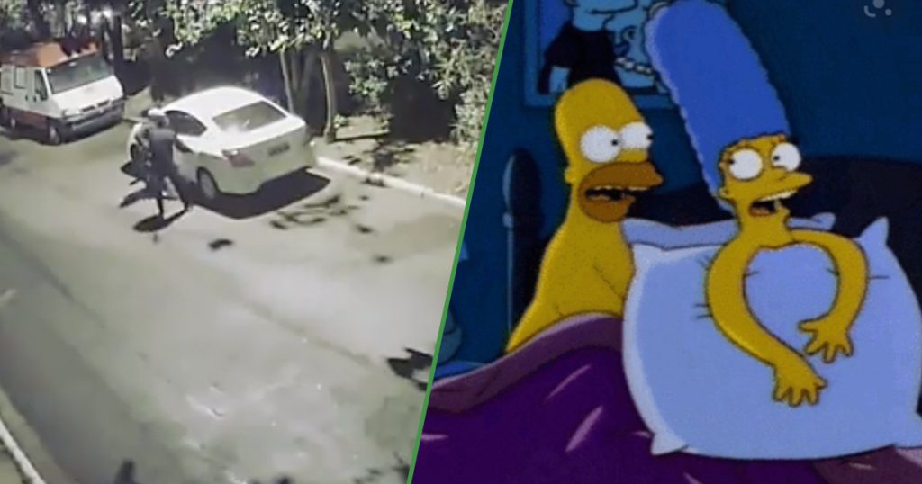 El curioso momento fue captado por una cámara de seguridad donde el auto estaba estacionado, y en él se ve como unos asaltantes se acercan al vehículo con la intención de abrirlo para llevarlo al deshuesadero, con el inconveniente que dentro había una parejita haciendo caso del consejo de su nutriólogo de quemar calorías, lo que de momento afecto sus planes (estamos hablando de los sufridos ladrones).