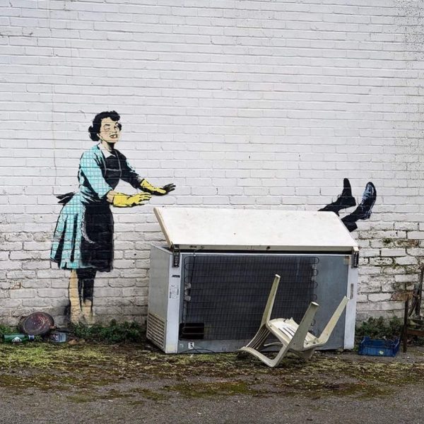 Banksy presenta un nuevo mural de 'Máscara de San Valentín' en Margate, Inglaterra. Parece resaltar la violencia doméstica, presentando a...