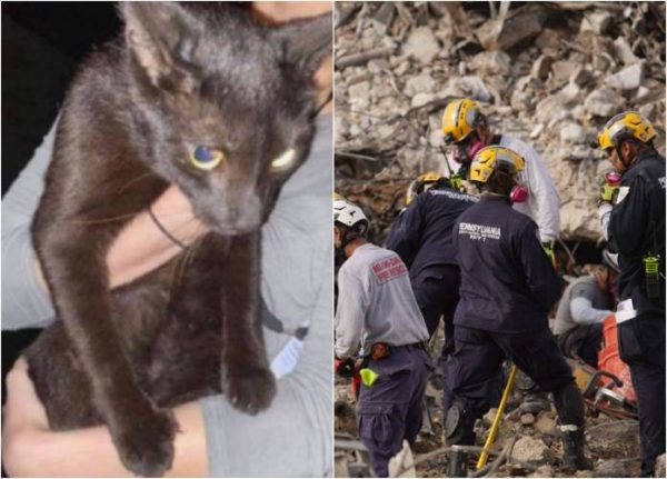 Un gato negro de nombre Binx fue hallado con vida de entre los escombros del edificio Surfside en Miami El...
