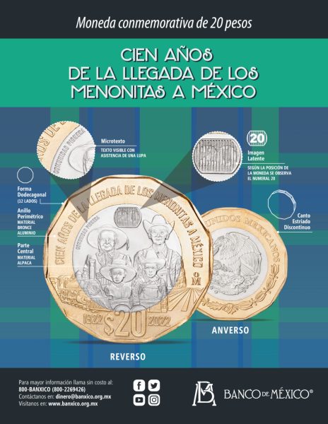 El Banco de México (Banxico) informó que este lunes puso en circulación una moneda de veinte pesos, conmemorativa de los...