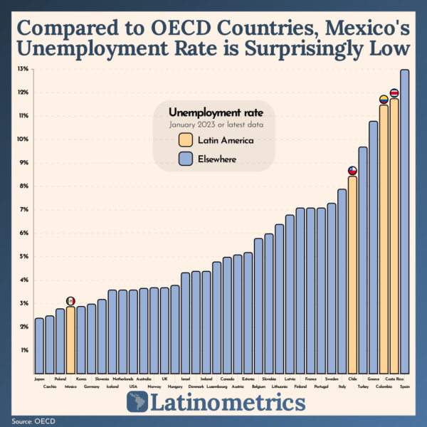 Tasa de desempleo de México, más baja que la de Reino Unido y EE.UU. y dos veces menos que la Suecia