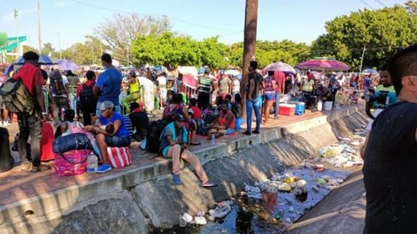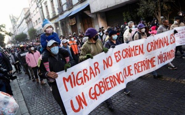 Un grupo de migrantes protestó pacíficamente frente a la embajada de EE.UU en México, en el marco del Día Internacional...