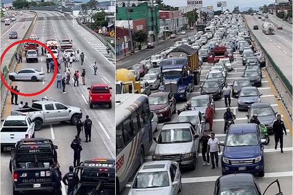 Fuerte enfrentamiento armado en la Carretera México-Cuernavaca en medio de una persecución por robo de automóvil. Forajidos chocan contra muro...
