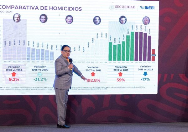 La titular de la SSPC, Rosa Ícela Rodríguez señaló que el dato de la baja en los homicidios es importante...