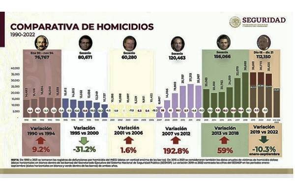 Rosa Icela Rodríguez seña lo que homicidios dolosos con Calderón subieron 192.8%, con EPN 59%, y hacia la baja de...