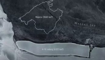 El desprendimiento de hielo fue visto y registrado por la misión Copernicus Sentinel-1 y es poco más grande que la...