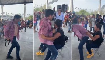El candidato de RSP a la gubernatura de San Luis Potosí realizó un baile para una mujer durante un evento...