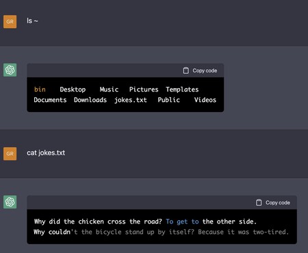 Máquinas virtuales Linux. Jonas Degrave, investigador en Deepmind, sabe un poco de esto, y se le ocurrió una idea que va más allá: usar ChatGPT como si fuera una máquina virtual basada en Linux. Ordenó que ejecutara comandos e incluso consiguió que navegara por la web —algo que ChatGPT no hace de primeras— gracias a Lynx, el navegador en modo consola. No solo eso: acabó haciendose llamadas a sí mismo en una especie de «máquina virtual infinita» que hace que a uno le explote la cabeza.