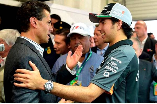 Peña Nieto otorgó millonario patrocinio a Checo Pérez. Pemex podrá demandar porque corredor rompió exclusividad y promociona otra petrolera