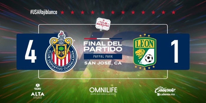 Las Chivas se destaparon esta noche y golearon por 4-1 al León en la ciudad de San José, California.