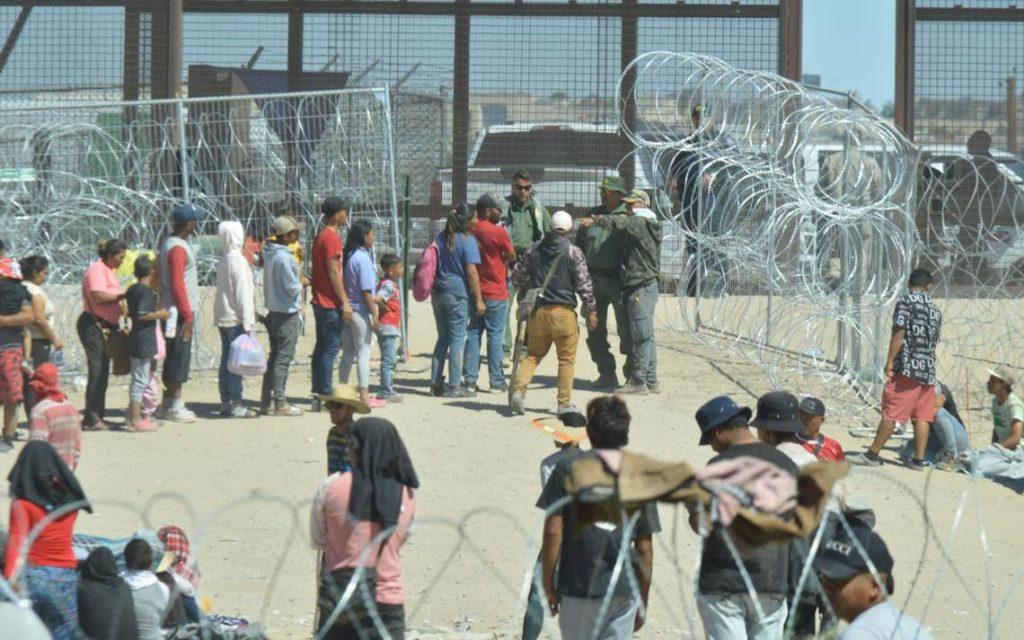 Cientos de migrantes permanecen en el bordo del río Bravo a la altura de la puerta 36, del lado norteamericano, en espera de que autoridades del CBP y de la Guardia Nacional Texana, los reciba para procesarlos para el asilo político.