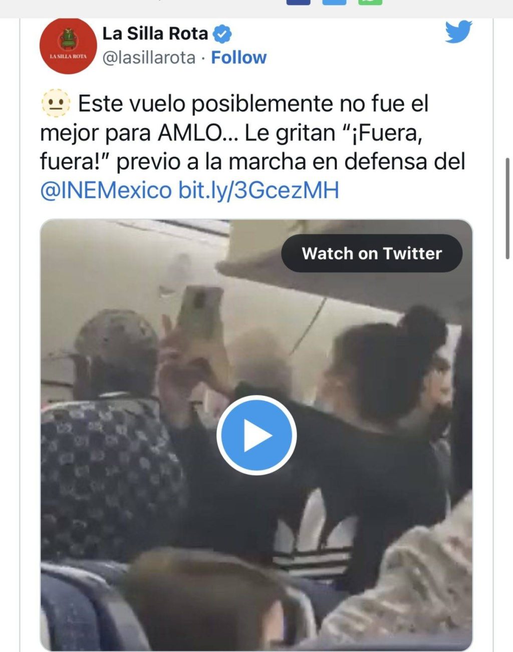 RegeneraciónMx, 12 de noviembre de 2022. A través de redes sociales, comenzó a circular un video traqueado en el que se muestra al presidente Andrés Manuel López Obrador bajando de un avión pero en el fondo gritos de personas que están inconformes con su gobierno.