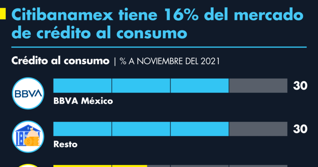 Sólo después de BBVA México, el grupo financiero Citibanamex mantiene la mayor presencia en el mercado de crédito al consumo nacional, con 16% del total.