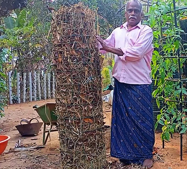 Después de plantar los brotes, Varghese los regó regularmente, pero sin encharcarlos. En un mes, las hojas habían comenzado a crecer fuera de la torre de malla y agregó fertilizantes orgánicos para reponer la mezcla para macetas.