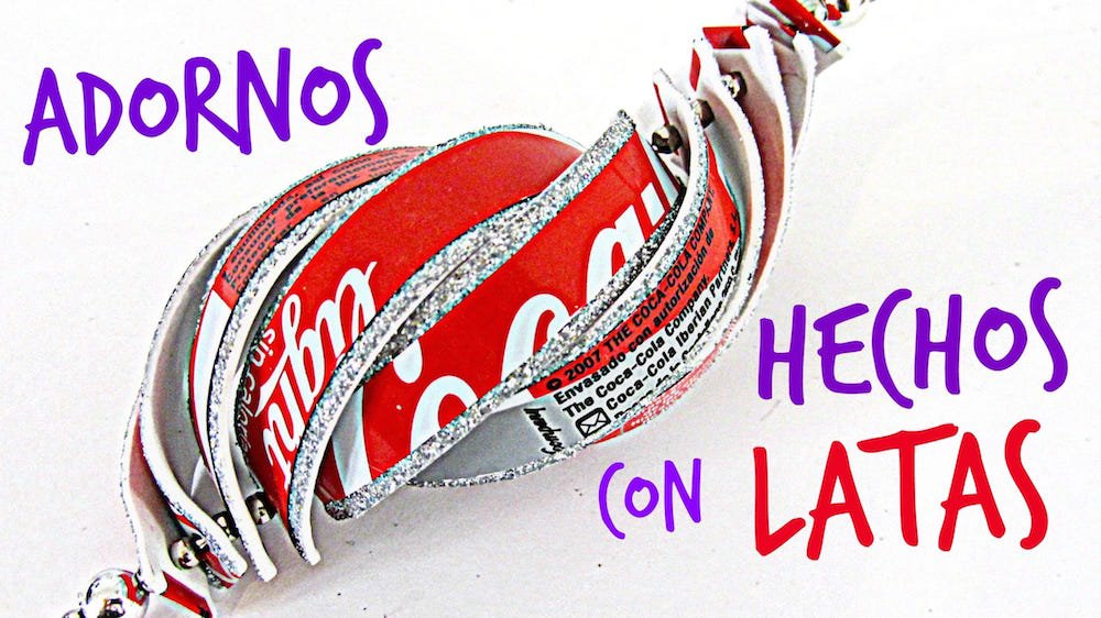 Instrucciones para hacer adornos navideños con latas de refrescos.