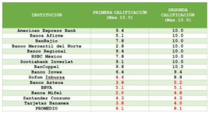 Por otra parte, American Express Bank, Banco Regional, Scotiabank y BanCoppel, aprobaron la evaluación desde la primera oportunidad e incluso mejoraron su puntuación en la segunda revisi.